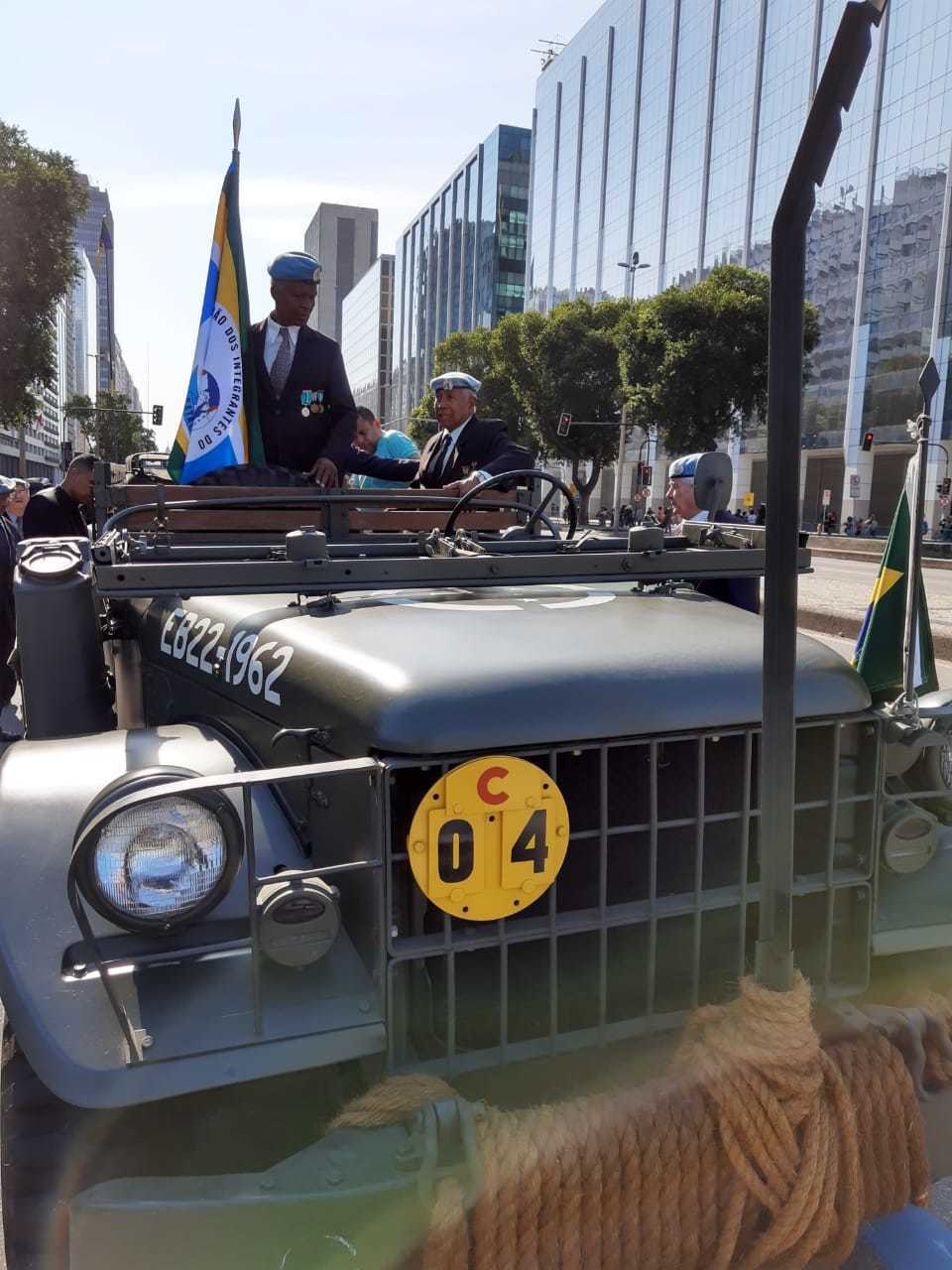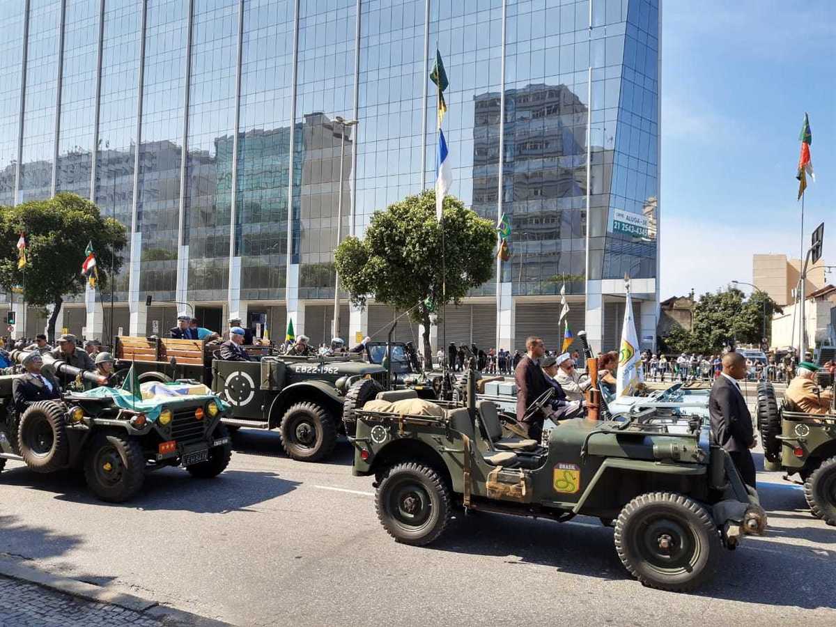 No desfile militar do Dia da Pátria um dos destaques foi uma viatura histórica Chevrolet G506 fabricada em 1942 que conduziu dois combatentes do maior conflito bélico da história humana.